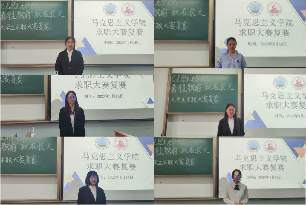 (通讯员 王铃瑜)5月16日14时,马克思主义学院“勇往职前,就在长大”求职大赛复赛在13教C119室举办,辅导员李敏、参赛选手及各年级部分学生观众参与了此次活动。