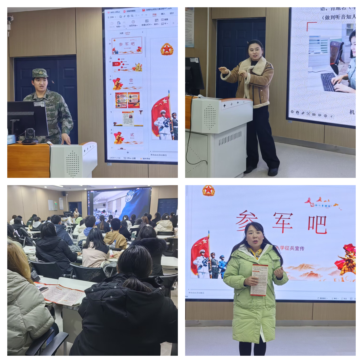 (通讯员 冯定琴/文 万希/摄)迷彩青春扬斗志,意气风发少年行。为鼓励我院学生踊跃参军入伍,12月14日晚,马克思主义学院在文科大楼1008室开展了征兵宣讲会。马克思主义学院退伍在读研究生刘洁、陈茂受邀主讲。学院党委副书记汤慧珍、辅导员张云雾及70余名本科生参会。