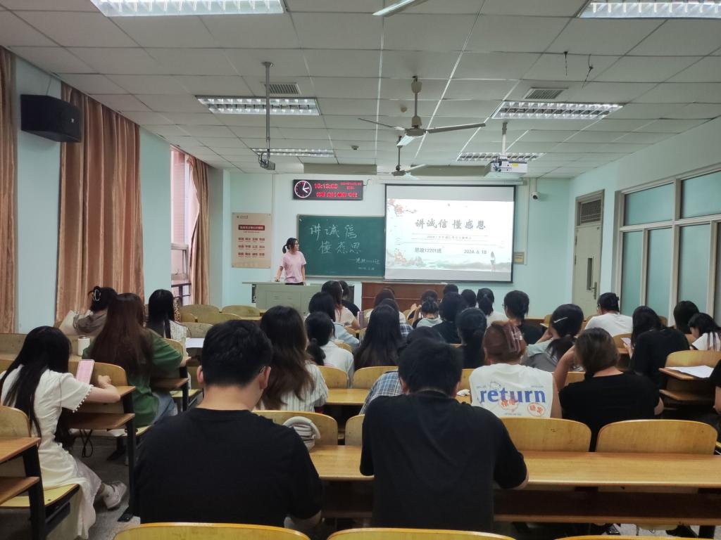 “在这个温暖的时代,我们要知恩感恩”。班会上,班主任鼓励同学们积极践行社会主义核心价值观,培育诚信、感恩、奋斗精神。辅导员向同学们普及了生源地贷款、学校资助政策以及防范电信诈骗等金融常识。汤慧珍副书记鼓励同学们要努力刻苦学习、勇于参与竞赛和社会实践,自立自强、奋勇拼搏,以实际行动报效祖国、回馈社会。