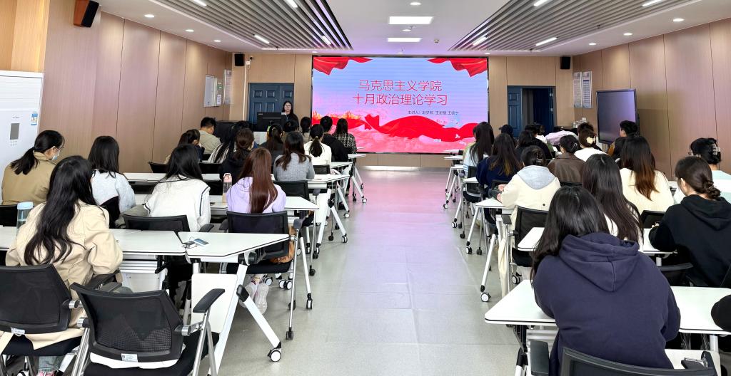 (通讯员 程晨)风劲好扬帆,奋进正当时。为深入学习贯彻习近平新时代中国特色社会主义思想,提升研究生政治理论素养,马克思主义学院于10月22日在文科楼1008室开展了研究生十月政治理论学习。会议由赵梦帆主持,2024级全体研究生参加学习。