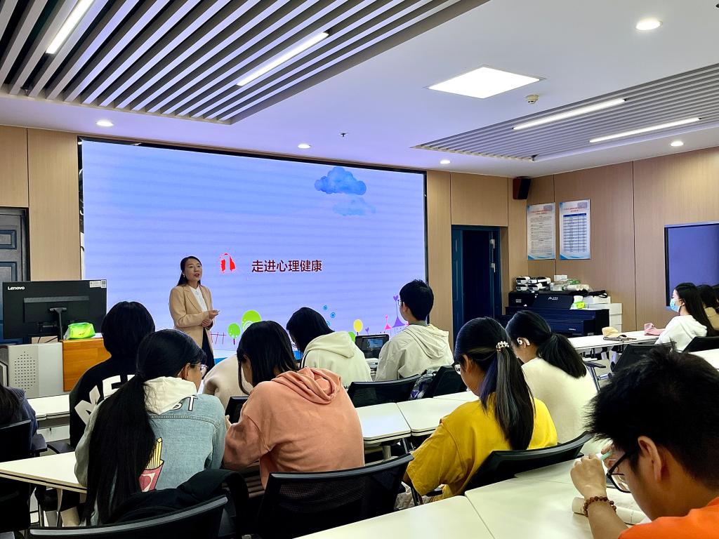 讲座伊始,张老师以目前青少年群体的心理健康状况为引,启发同学们的思考。她从“走进心理健康”、“认识心理咨询”、“学习心理援助”等方面进行了详细讲解,结合生动案例深入浅出地强调了科学的身心健康观、大学生常见心理问题的识别、心理危机应对方法等内容。她呼吁学生骨干学会自助与助人,并详细介绍了我校四级心理健康教育体系。