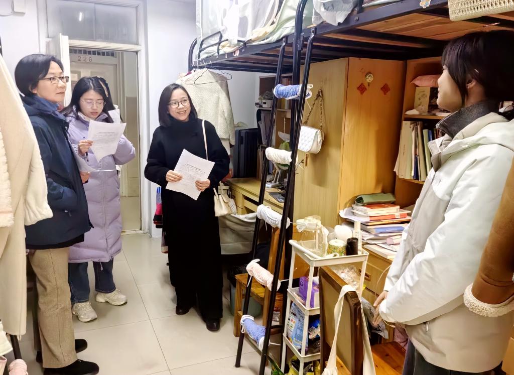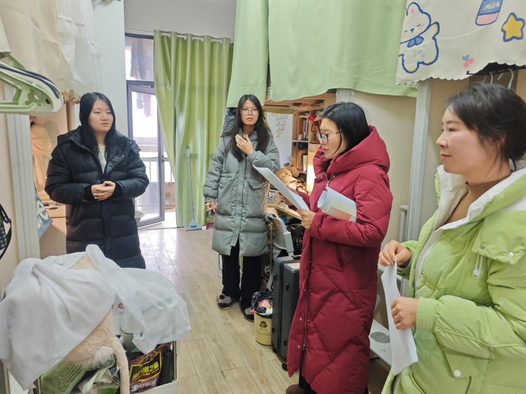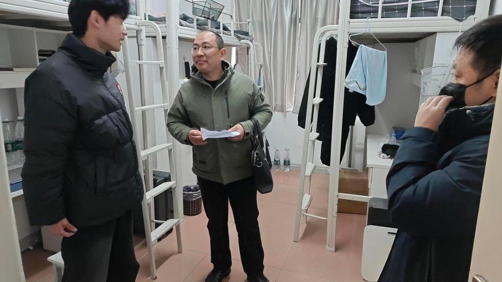 在走访过程中,姜学勤、刘小燕一行仔细检查了宿舍的卫生状况与安全设施,并提醒同学们注意保持宿舍整洁,保持良好的生活习惯。特别强调了宿舍用电安全、防火防盗等问题,叮嘱同学们要严格遵守宿舍管理规定,增强安全防范意识,营造安全、舒适、和谐的生活环境。