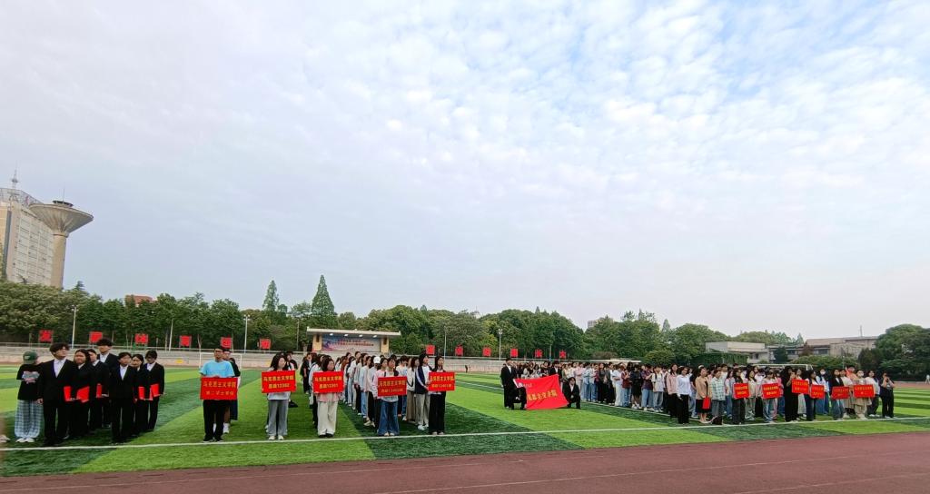 4月28日早上7点,马克思主义学院在东校区田径场举行升旗仪式。学院党委副书记汤慧珍、辅导员张云雾以及全院本、研学生参加了升旗仪式。仪式由思政12401班高宇桐主持。