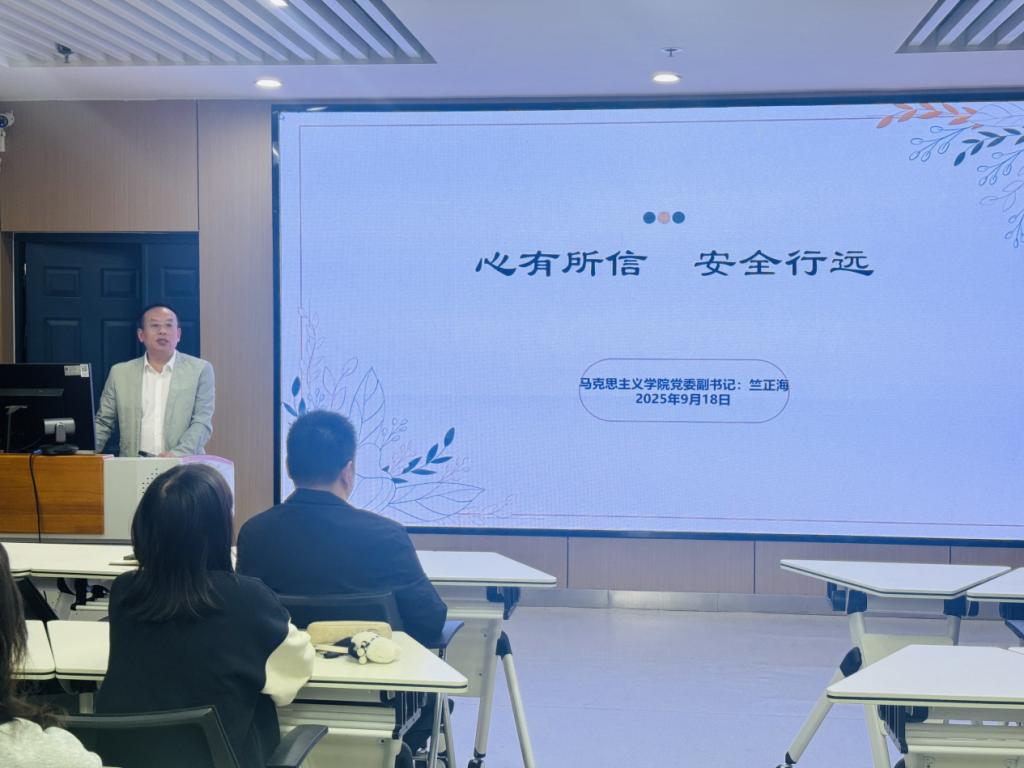 竺正海以“心有所信,安全行远”为题,为新生讲授开学安全第一课。他以“寄蜉蝣于天地,渺沧海之一粟”为引,阐述了生命的意义与价值,教育大家敬畏生命、珍视自我。结合近期高校典型案例,他围绕宿舍用电、交通出行、防范电信诈骗、心理问题识别与疏导等重点领域展开深入讲解,通过真实案例提醒大家增强安全意识、掌握避险技能。
