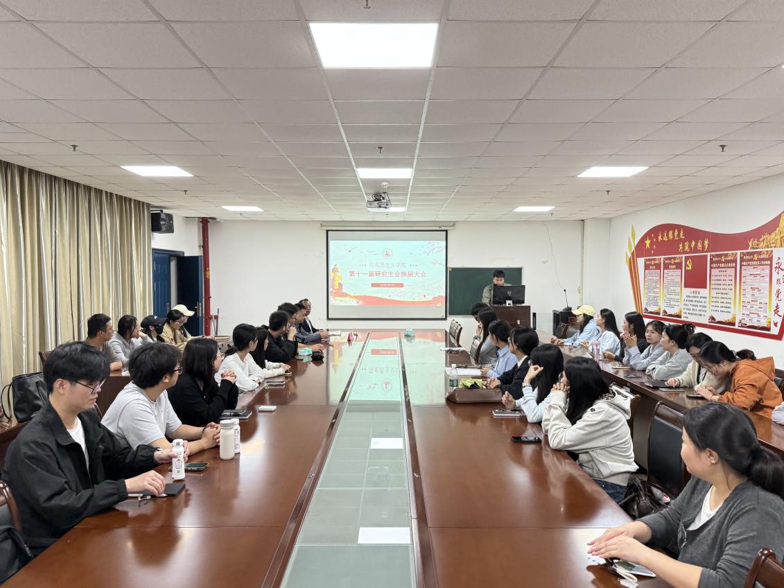 (通讯员 汤羽彤/文 刘诗雨/摄)9月29日晚上,马克思主义学院第十一届研究生换届大会于文科大楼1104会议室举行。院党委副书记竺正海、辅导员邓鹏、第十届以及第十一届研究生会全体成员参加会议。会议由马克思主义理论QX241班学生崔孔辉主持。
