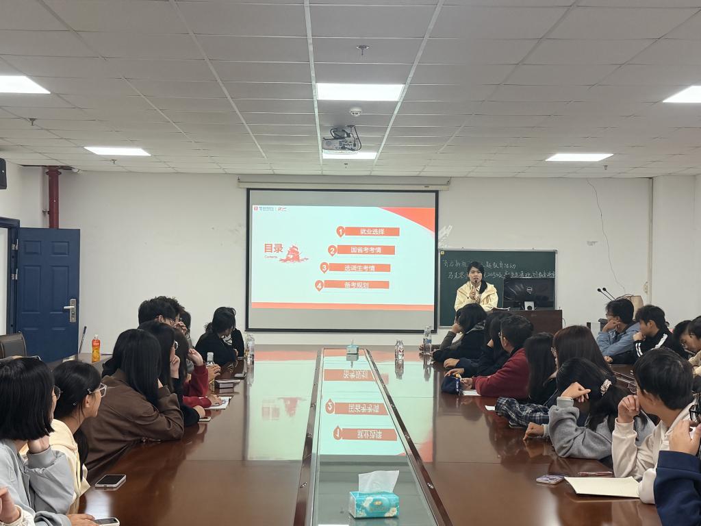 讲座开篇,陆婷老师紧扣就业市场动态与马克思主义学科特性,为新生系统拆解六大主流职业发展路径——企业工作以“晋升空间广、收入潜力大”为亮点;公务员岗位凭借“稳定性强、保障完善”受青睐,但竞争异常激烈;考研升学能显著提升学历含金量,拓宽发展边界,却对学习能力与毅力提出高要求;事业编适配度高,是追求“工作强度适中、职业稳定”同学的优选;出国留学需以家庭经济支撑为基础,且对学业绩点、语言能力有明确门槛;自主创业虽能助力实现个人理想,却伴随较高的市场风险。清晰的路径解析,帮助新生结合自身特质初步锚定职业方向。