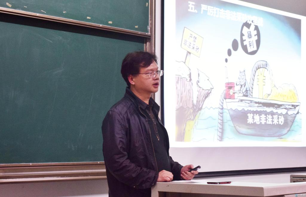 新闻网讯(学生记者 汪自立/文 夏春秋/摄)4月30日晚7时,长江大学大型思政课《生命长江》第四讲在13教A203教室开讲,此次课程主题为长江生态文明建设的理论与实践。荆州市环保局沙市分局党组书记刘松和马克思学院老师肖芬荣担任课程讲师。