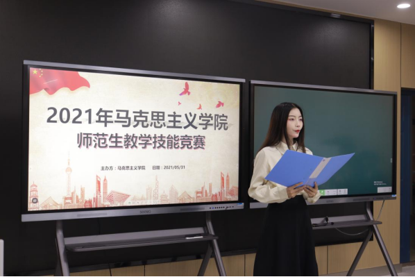 (通讯员 曹明圆)2021年马克思主义学院师范生教学技能竞赛于5月31日下午2:30在文科大楼1008思政VR实验室如期举行。马克思主义学院副院长黄晓云、党委副书记马小佼、贾廷秀教授、万敏副教授、卢军副教授、办公室徐先荣主任、思政11801班班主任汤波兰老师等7人担任此次竞赛的评委。思政11801班、11802班及思政(2)12001班全体学生参与了活动。