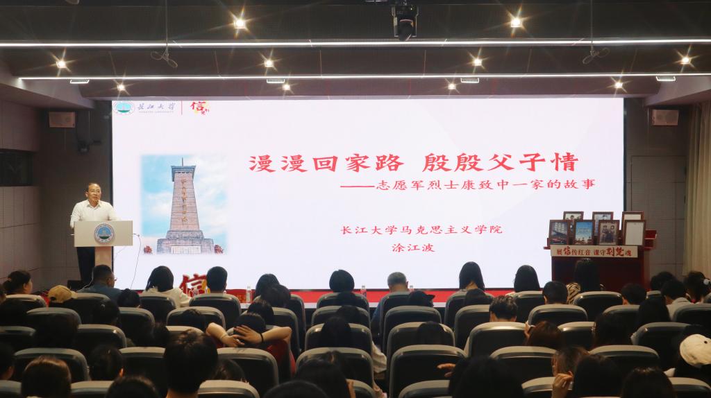《信·荆楚》第五讲“漫漫回家路,殷殷父子情”由马克思主义学院副院长、《信·荆楚》课程组教师涂江波、马克思主义学院教师汤波兰、马克思主义学院学生蔡坤鹏联袂讲授。课程通过深情讲述、书信品读、视频播放等丰富的表现形式重新展现70多年前的多封抗美援朝烈士战地家书,引导在场师生一同走进那段浸染硝烟的岁月,感悟志愿军官兵为了祖国和民族的尊严而英勇无畏、舍生忘死、奉献一切的家国情怀。