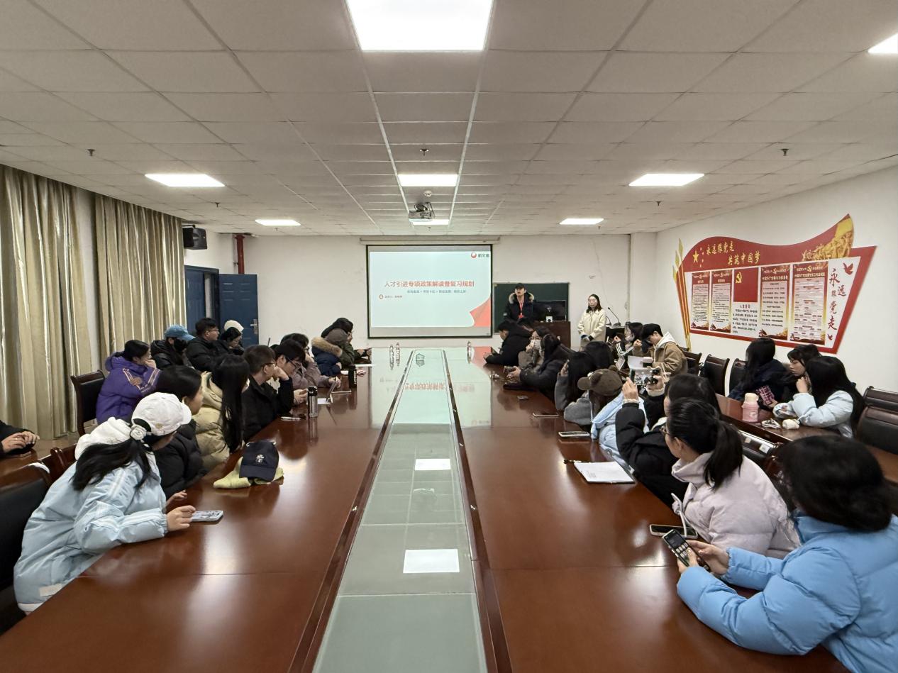 (通讯员 汤羽彤/文 刘诗雨/摄)为助力研究生精准把握人才引进相关政策,持续强化学院人才队伍建设,切实服务学生就业发展需求,12月25日晚7点,马克思主义学院于文科楼1104教室隆重举办人才引进专项政策解读暨复习规划讲座。本次讲座特邀荆州新文道教育资深讲师陈雅倩老师主讲,学院辅导员邓鹏老师及50余名研究生共同参与。